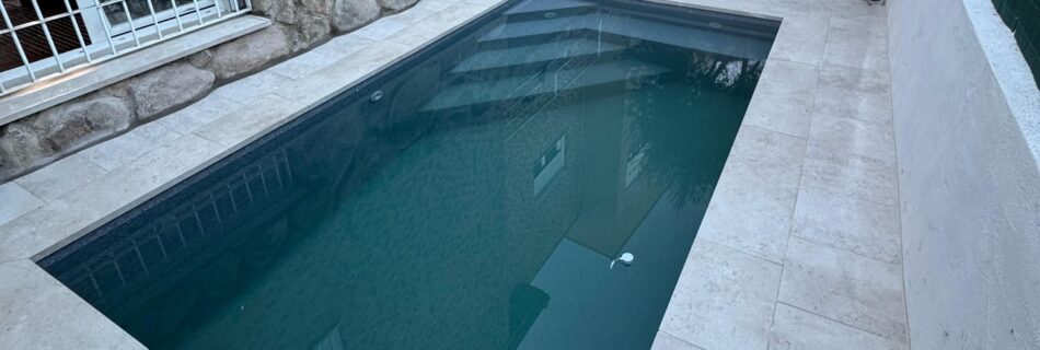 Rehabilitación de piscina con lámina armada VOGUE Urban de RENOLIT ALKORPLAN. Solución duradera, estética moderna y máxima impermeabilización para la piscina. La Obra:
