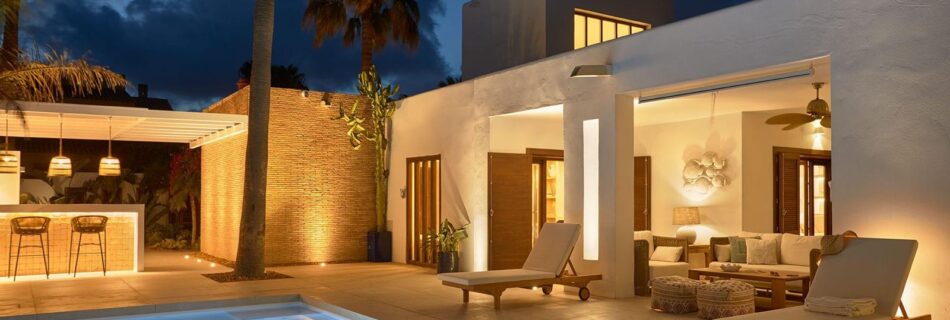 Rehabilitación integral de piscina, integrando playa, entorno renovado y elementos de iluminación. La obra: