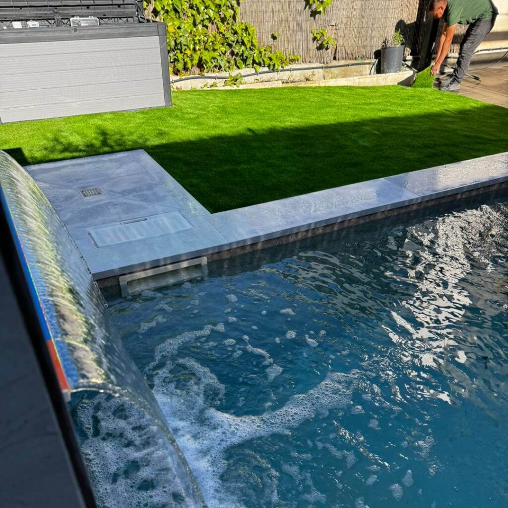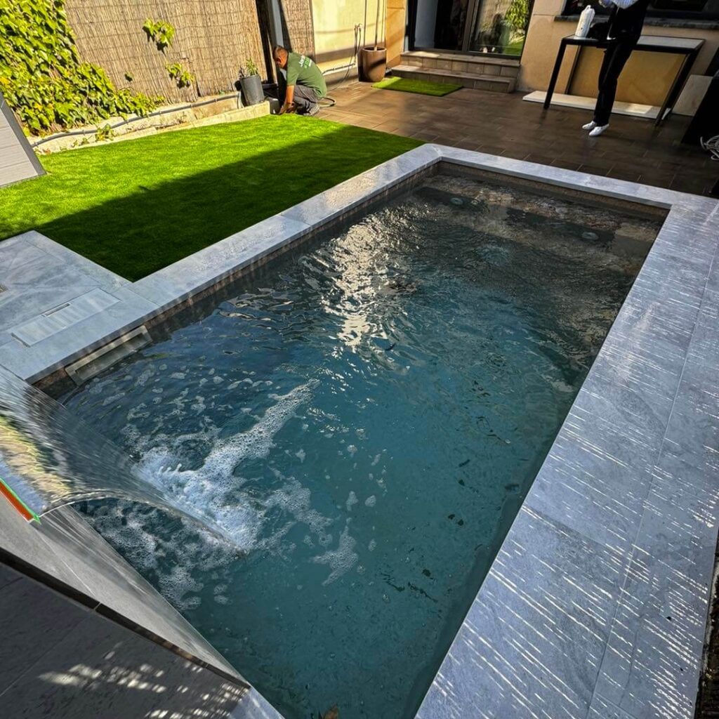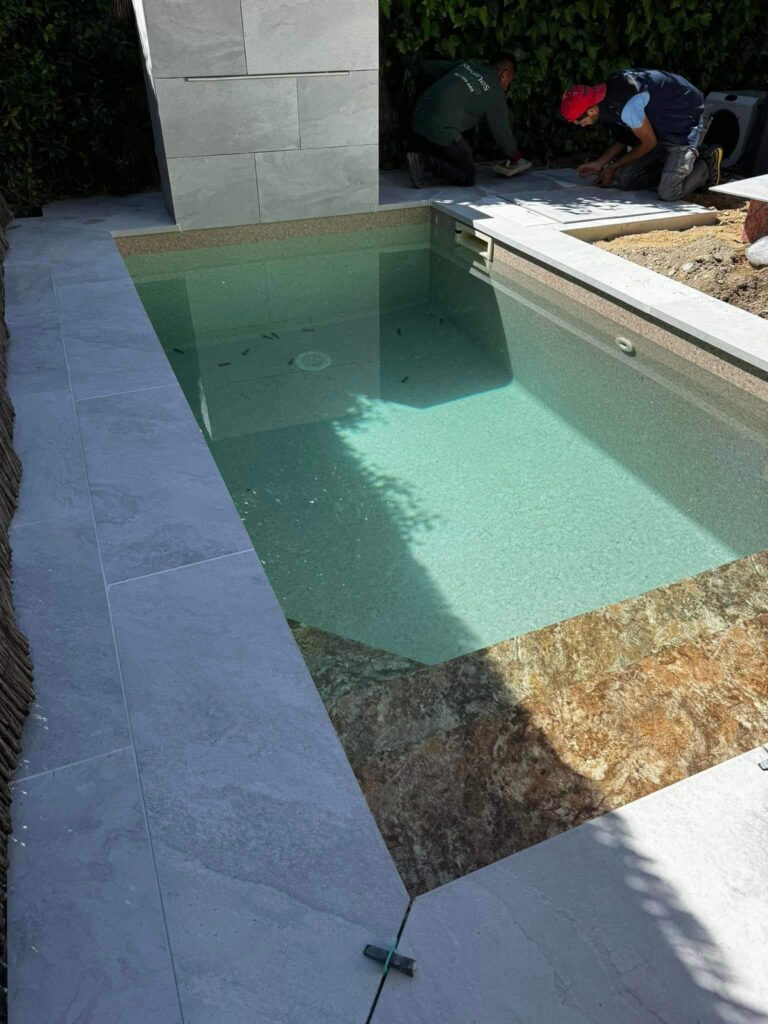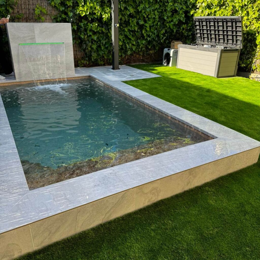 Piscina con combinación de lámina armada RENOLIT ALKORPLAN TOUCH Authentic y Sublime.