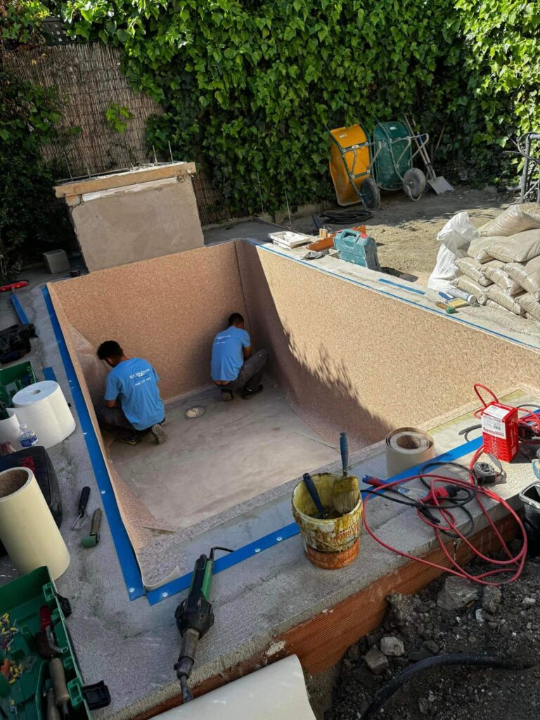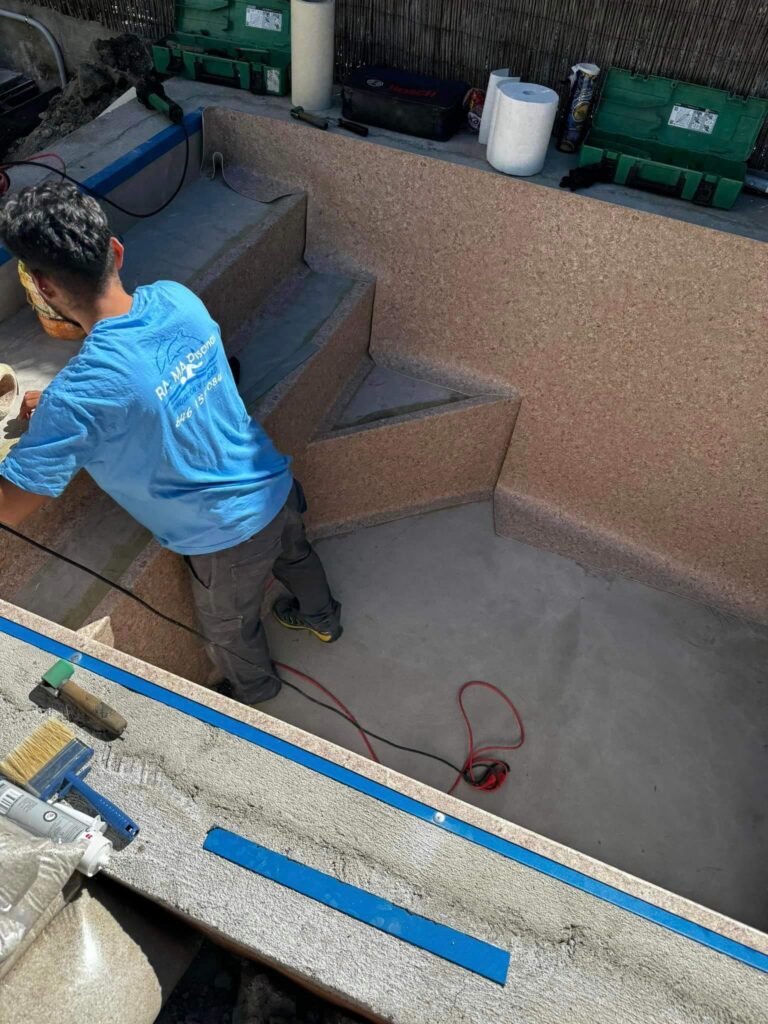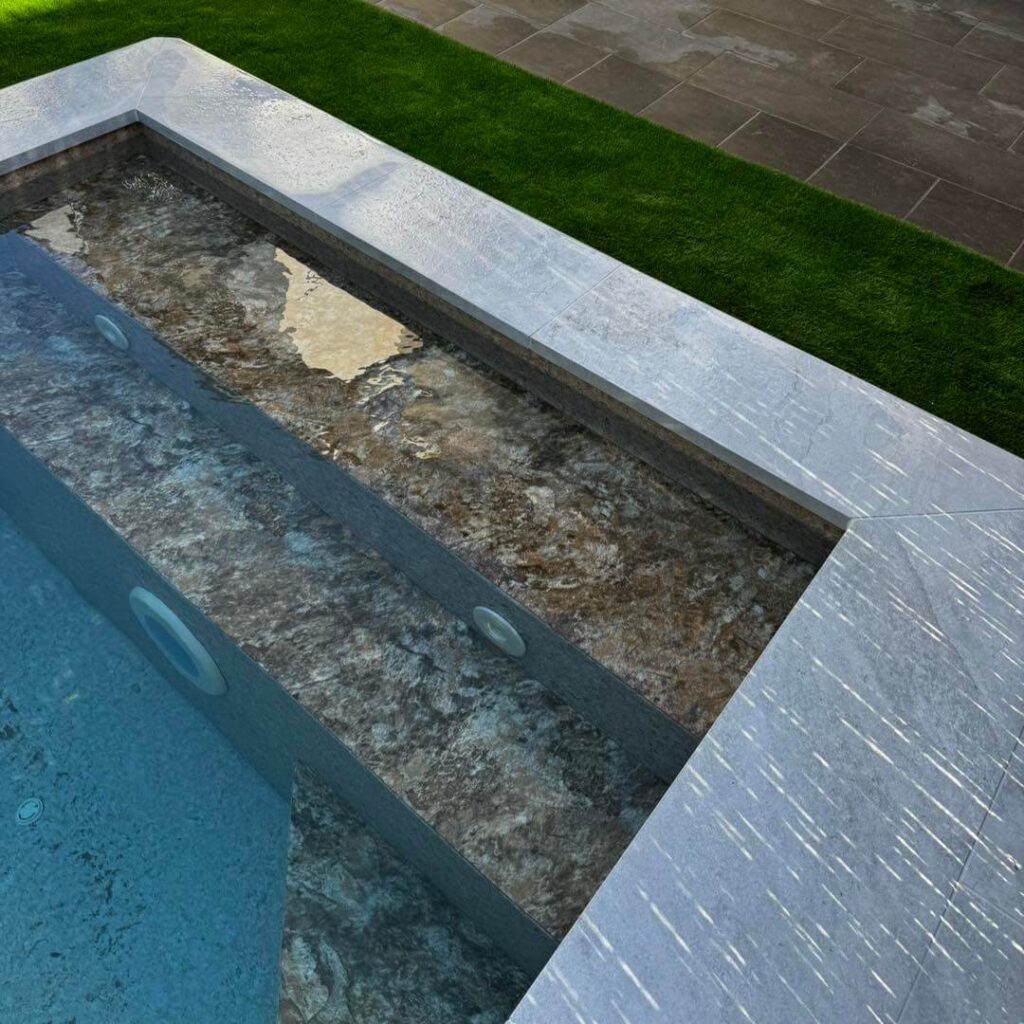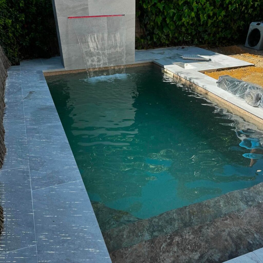 Piscina con combinación de lámina armada RENOLIT ALKORPLAN TOUCH Authentic y Sublime.