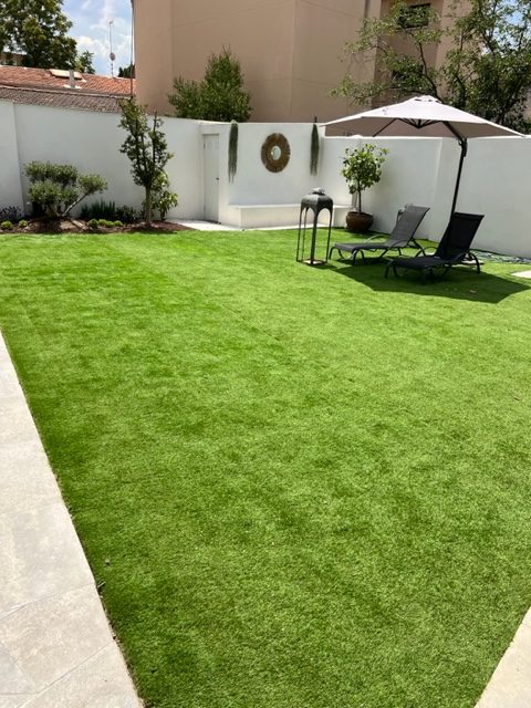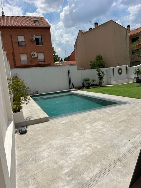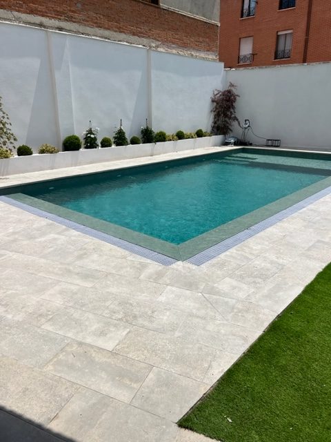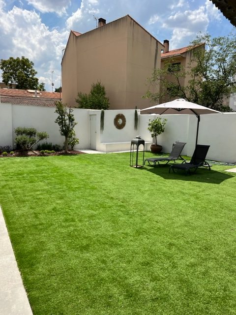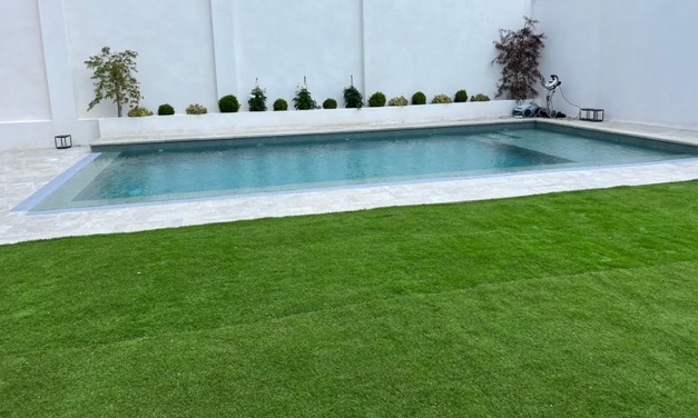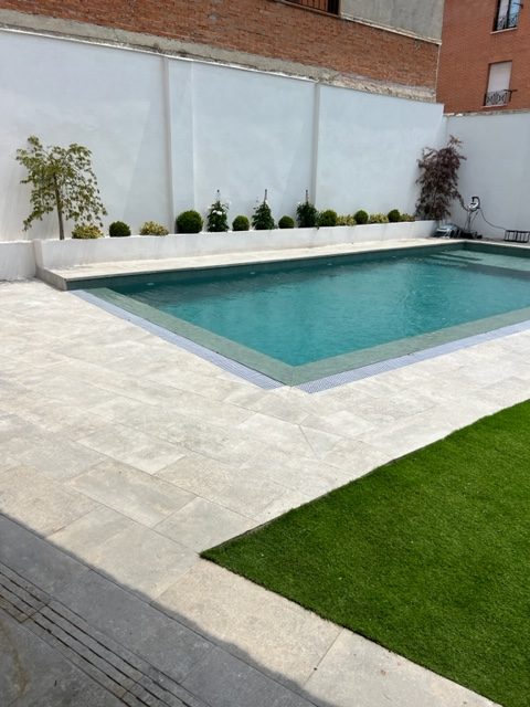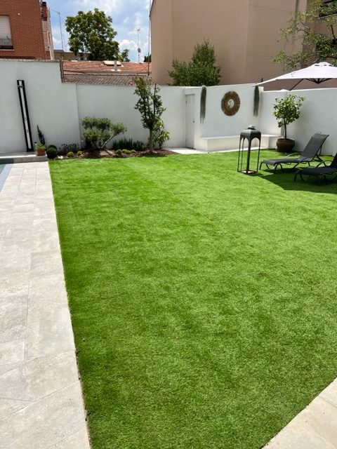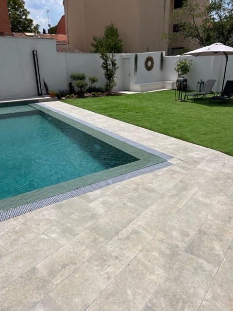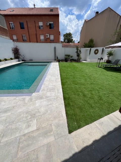 Césped artificial y Suelo porcelánico en el entorno