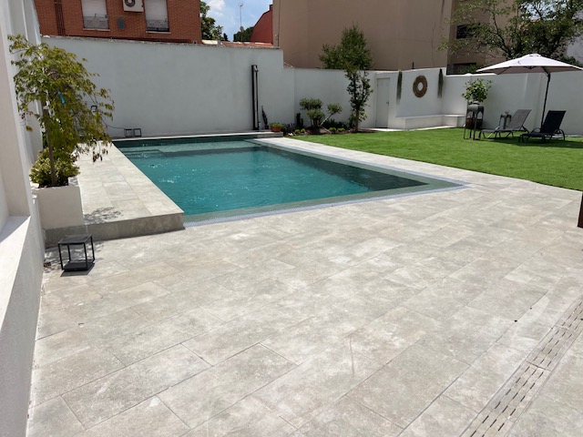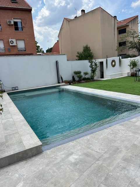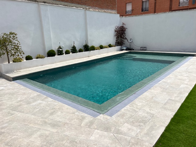 Combina elegancia y funcionalidad a la perfección. El color Jade da un aspecto sobrio y elegante a la piscina siendo muy versátil para cualquier entorno.