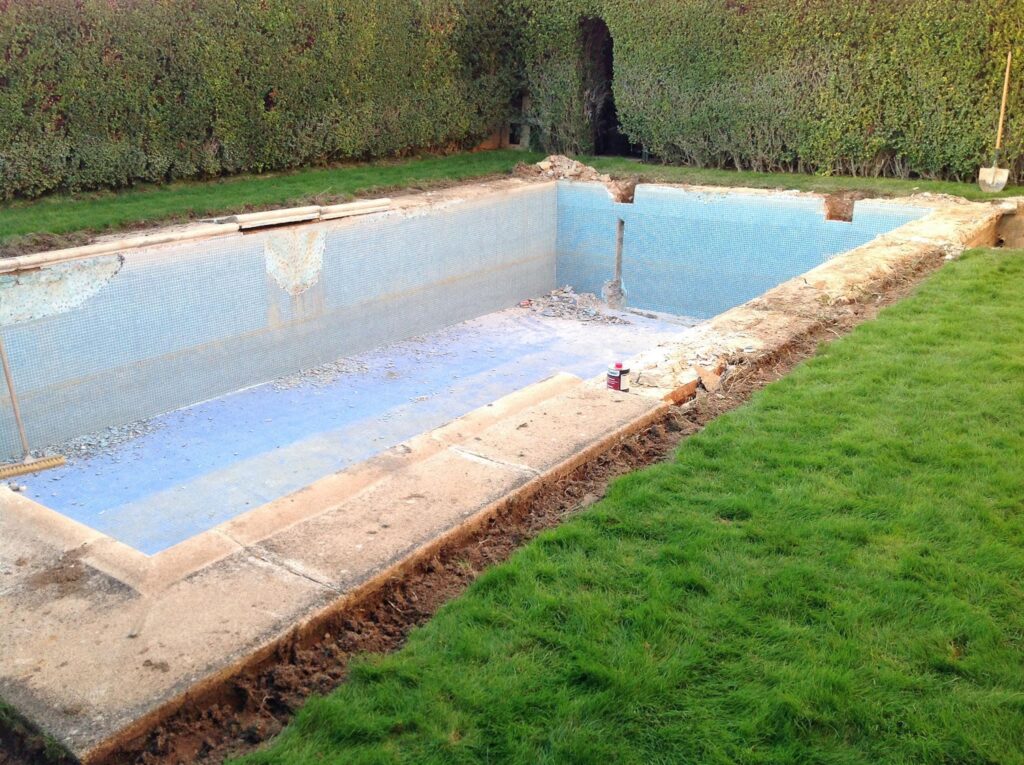 Rehabilitación de Piscina 11×6, Plato de ducha y Valla de separación con el jardín